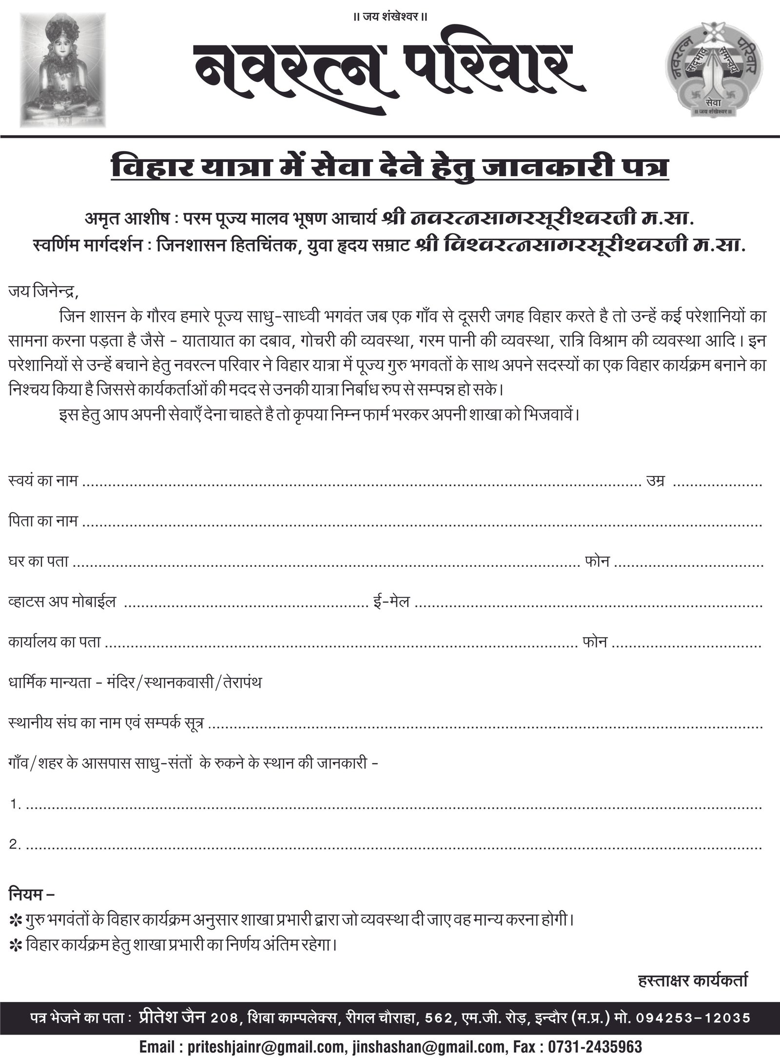 सन २००६ चातुर्मास इंदौर का तय था इसके पूर्व विहार करते हुए प. पु. आचार्य श्री नवरत्नसागरजी और प. पु. प्रन्यास प्रवर श्री विश्वरत्नसागर जी म. सा. आदि साधु संत संत उज्जैन की सिद्ध भूमि मैना- श्रीपाल की आराधना स्थली पर कुछ समय के लिए पधारे थे. वहाँ पर कुछ युवको के भक्ति भाव से आत्म विभोर होकर उन्होंने पुरे समूह को एक मंडल के रूप में आराधना व आदि धर्म कार्य के लिए प्रेरित किया जिसे पु. प्रन्यास प्रवर के "नवरत्न युवक मंडल" नाम दिया धीरे धीरे सभी युवाओ ने अपनी उज्जैन और आस पास के क्षेत्रो में अपने भक्ति की पहचान बनायीं जो आगे जाकर "नवरत्न परिवार" के रूप में जाना गया।तत्पशात इसकी प्रथम कार्यकारिणी का गठन मोहनखेड़ा तीर्थ पर एक युवा सम्मलेन में हुआ इस सघठन के संचालन के लिए व सामूहिक जिन शक्ति कार्य को जन-जन तक पहुचाने के लिए गांव गांव में शाखाये बनायीं गयी और इस तरह युवाओ की संख्या में अप्रत्यशित अभिवृद्धि होती गयी, पु. प्रन्यास प्रवर की उपाध्याय पद आरोहण तक इस सघठन में लगभग पुरे मालवा क्षेत्र में अपना प्रभाव बनाया। बाद में हर चातुर्मास व सघठन द्वारा कई मासिक व वार्षिक कार्यक्रम में अपने सहभागिता से सिर्फ गुरु भक्ति का परिचय दिया वरन साधर्मिक भक्ति, अनुकंपा आदि तरह के कार्य करके अपने आप को अतुलनीय बनाया।